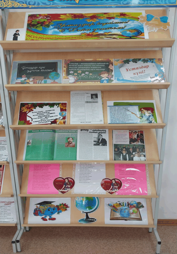 Ұстаздар күніне орай кітапханада «Ұстаз-ұлы тұлға» атты тақырыптық сөре қойылды.